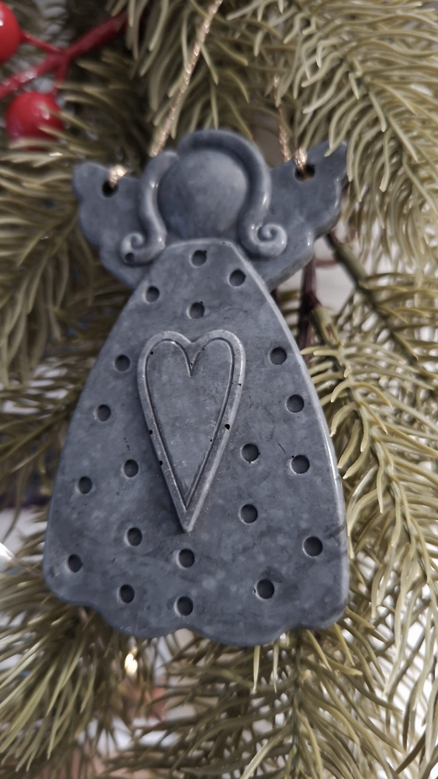 Egyedi beton angyalkás karácsonyfadísz