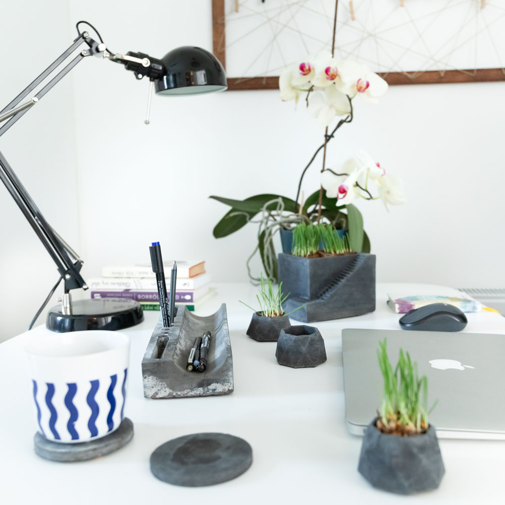 Mindegy, hogy home office vagy klasszikus iroda, életünk legnagyobb részét ebben a helyiségben töltjük el.Minden szünet a munkában egy kis inspirációt hozhat az egész napodra. Miért nem tennéd izgalmasabb és stílusosabbá az irodai környezetedet egy modern beton dizájn szettel? Az irodai design beton szettünk nem csupán egy egyszerű bútordarabok kombinációja, hanem egy művészi kifejezés is, ami egyedi stílusodat tükrözi.